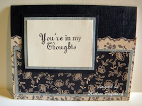 I really couldn't decide what to put in the one panel until I looked at my stamps. This flower silhouette stamp just said "pick me!", so I did. I used a glitter pen on the flower, BUT, this is not acceptable for the troops. This one I made for a friend, but I'll make others without the glitter for the troops.